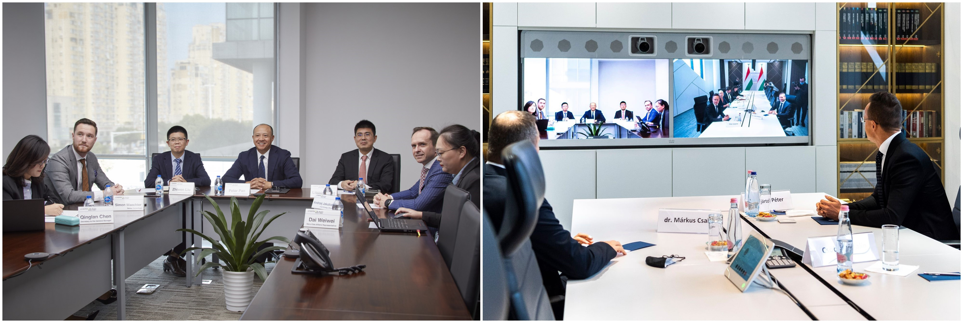 Nanjing Chervon Auto Precision Technology CO., Ltd. (hereinafter referred to as Chervon Auto) and H.E. Minister Péter Szijjártó held an investment announcement on the afternoon of October 19, 2020 in the form of video conference. The attendees of the conference included Mr. Pan Longquan, Chairman of Chervon Auto, Mr. Deng Lingqu, General Manager, Mr. Liu Zhiwen, Secretary of the Board of Directors and Chief Financial Officer, Mr. Jia Kuke from the Chervon Organization Strategy and Development Department, and other relevant persons in charge, as well as Mr. Szijjártó, Minister of Foreign Affairs and Trade of Hungary, and relevant government officials of Hungarian Investment and Promotion Agency and Hungarian Parliament.